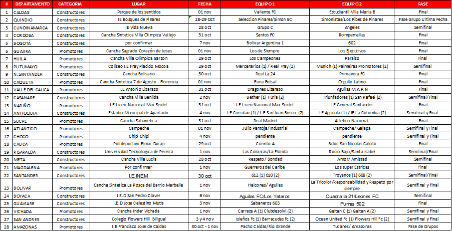 Programación partidos fin de semana 27 al 2 de noviembre